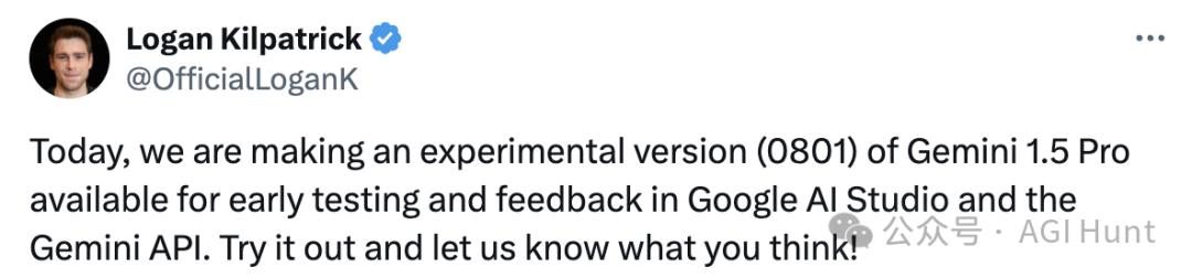 其实这是Google最近刚放出来的一个实验版本(0801),目前正在Google AI Studio和Gemini API上进行早期测试和反馈收集。