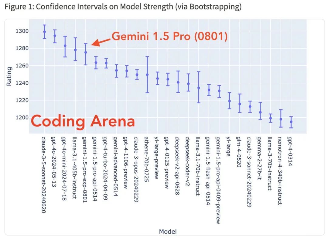 先看排行,Gemini 1.5 Pro以1300分的高分独占鳌头,远超第二名GPT-4o和第三名Claude-3.5。