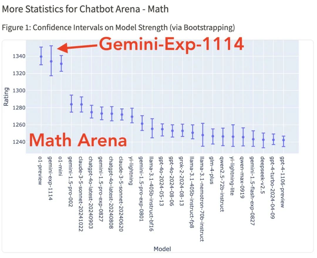 根据社区测试数据,Gemini-Exp-1114的累计得票数超过了6000票,这一数字背后是众多AI爱好者和专业人士对其性能的认可。其他分项评测中,Gemini-Exp-1114 在数学竞技场中并列第一,与 o1 的表现相当!![]()