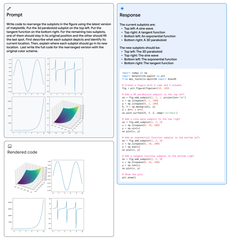 下面所有的图片顺序是先Gemini,后GPT4。另外GPT4不能处理视频和音频,另外也不能生成同时包含文字和图片的输出,所以这部分不比较。