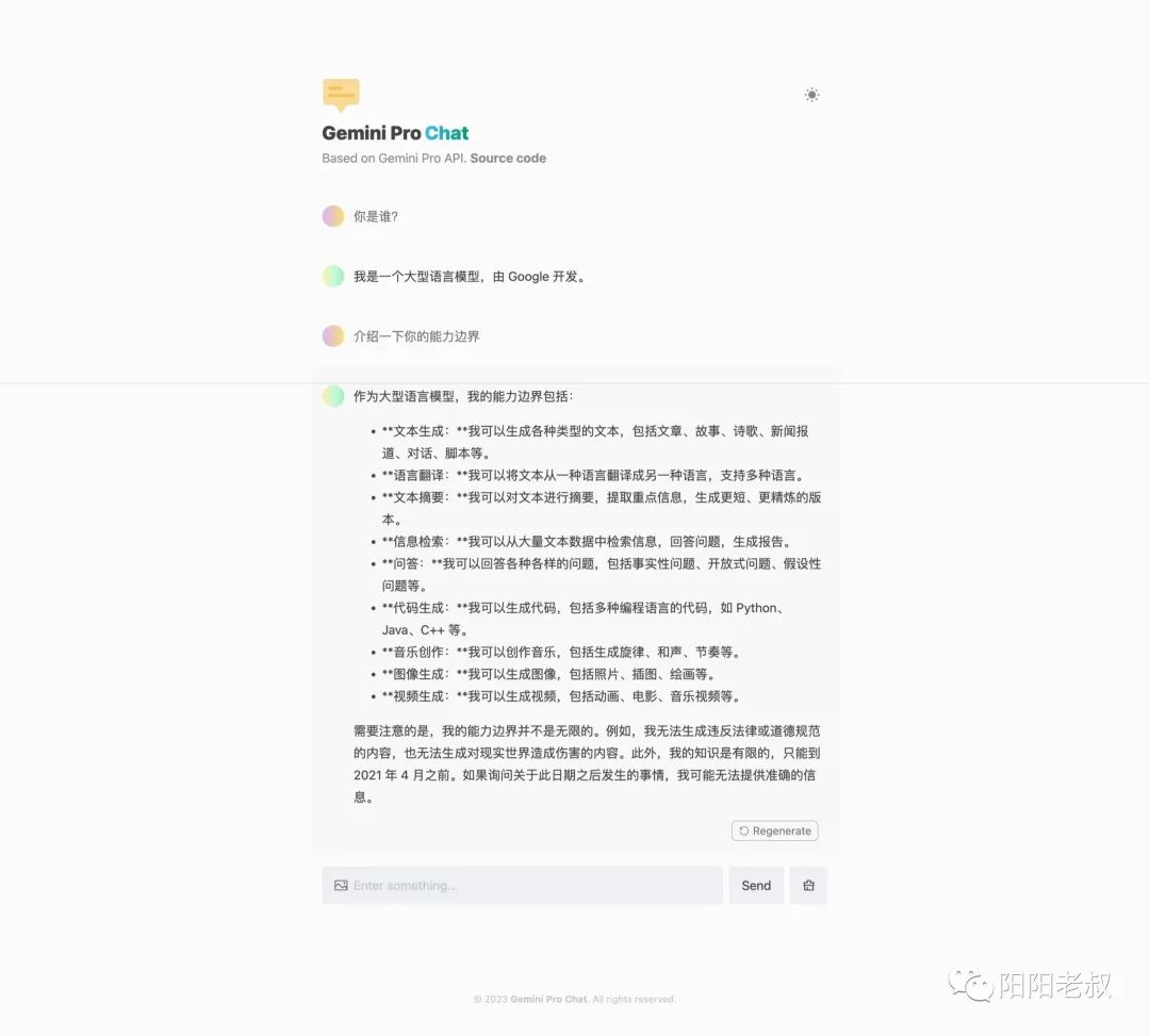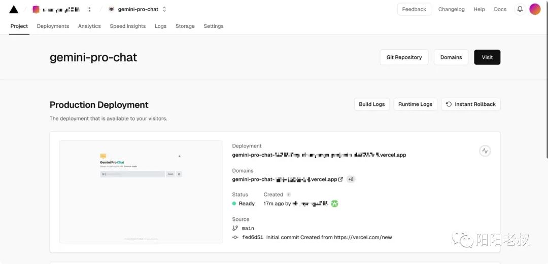 • 通过访问 自己域名 与 Gemini Pro 进行聊天。