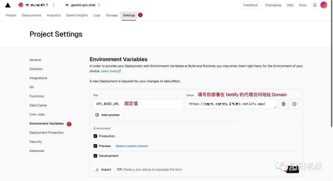 部署方式不介绍了,文件结尾有 palm-netlify-proxy 项目的 Github 地址,我只贴一下配置 API_BASE_URL 的环境变量的说明图。