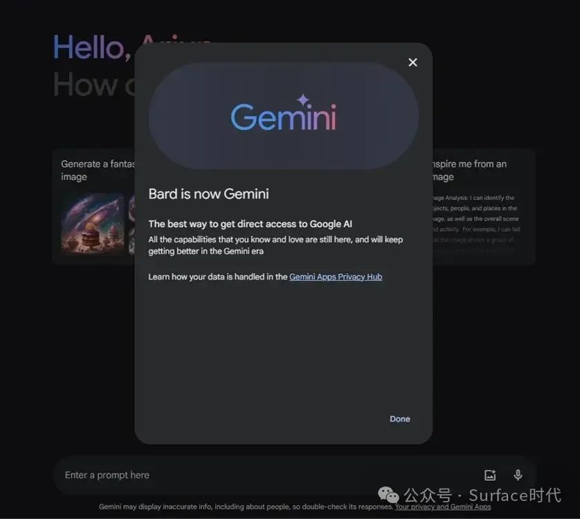 一、Google Bard 现在更名为 Gemini