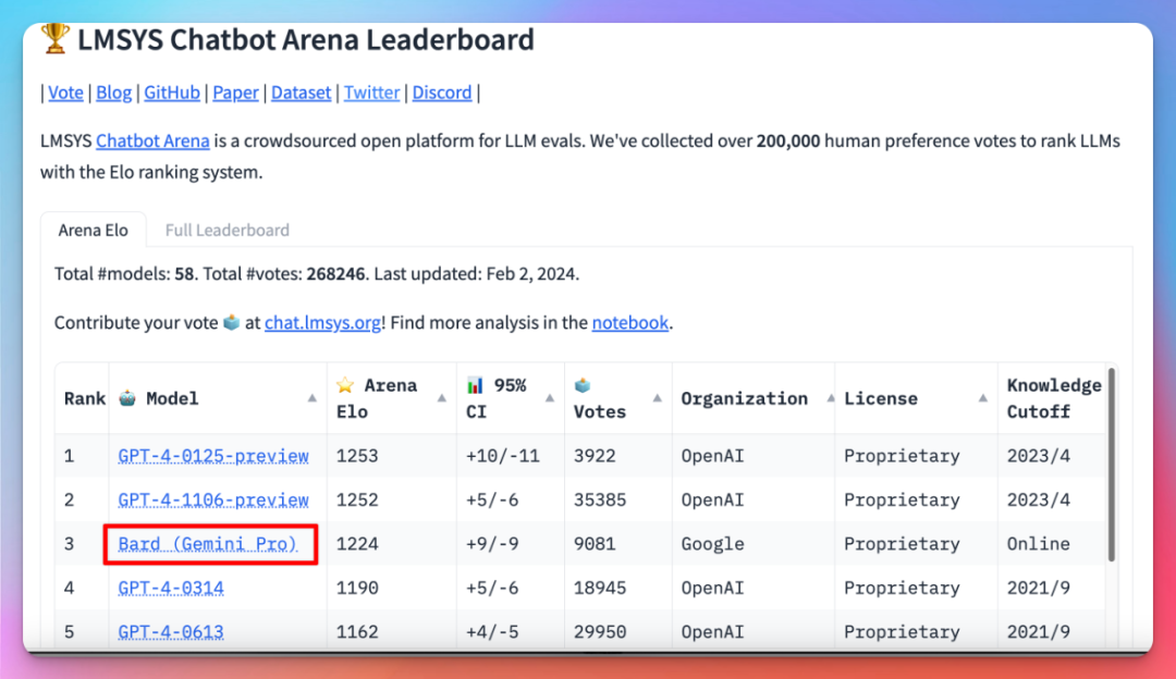 因为在最近的2月2日,Gemini Pro 已经在 @lmsysorg 排行榜上排名第三。