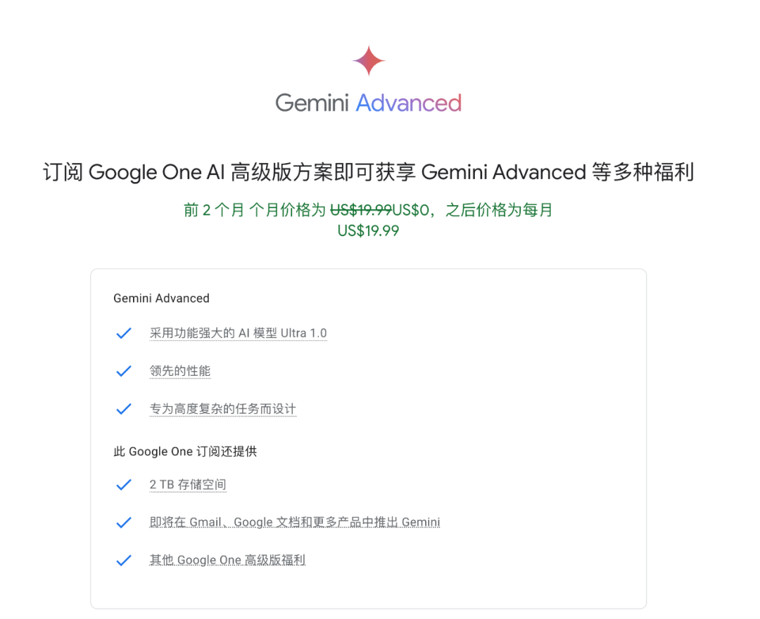 Gemini Advanced 现已作为 Google One AI Premium 套餐的一部分上线,月费 19.99 美元,并提供前两个月免费试用。