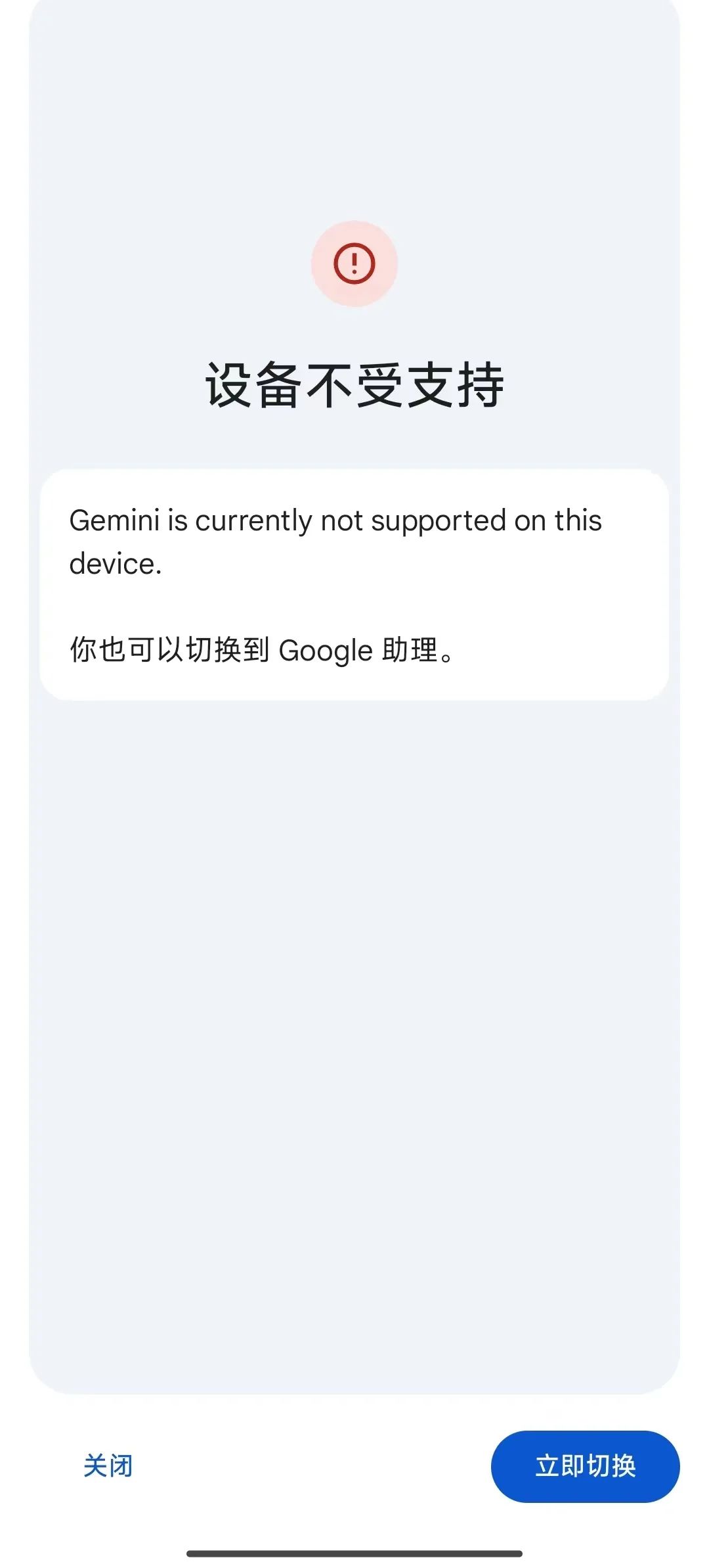 手机上也可以安装 Gemini 了,但是我的小米手机安装后显示“设备不受支持”。