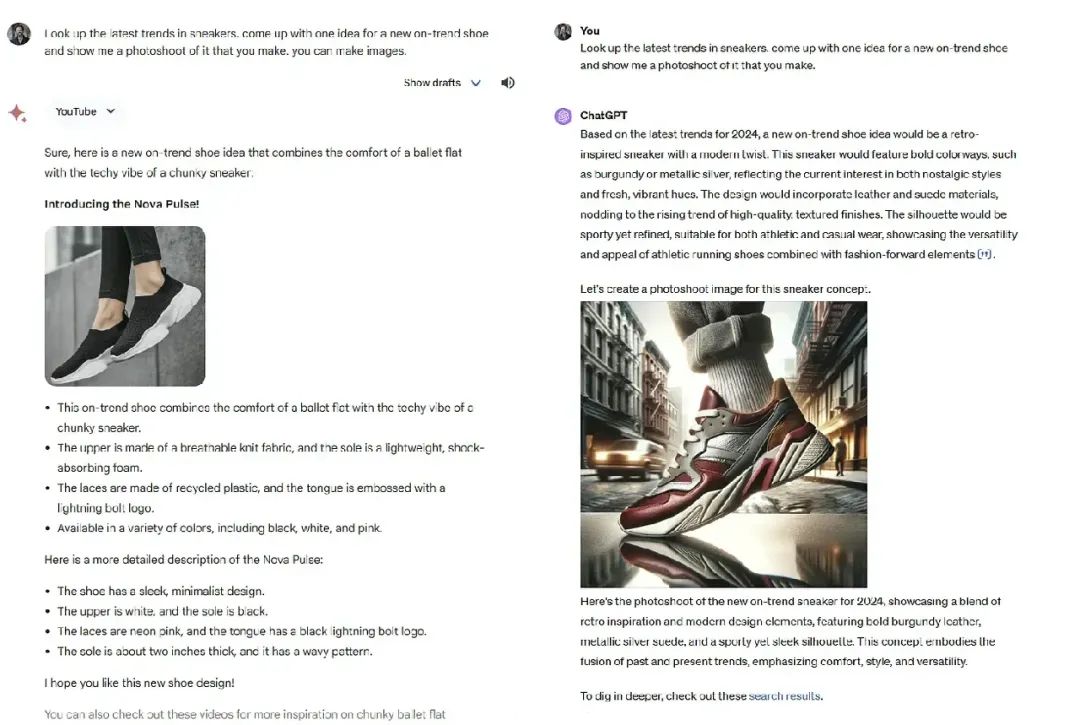 虽然还是个聊天机器人,Gemini 的界面比 GPT-4 更加优雅,而且在我的测试中,它比 ChatGPT 更少出现技术错误。在 ChatGPT 或 Copilot 的体现中,它也有着不同的“个性”。GPT-4 相当平淡(至少自从必应的个性 Syndey 消失以来),而 Gemini 则更显得友好,更易相处,喜欢言语游戏。