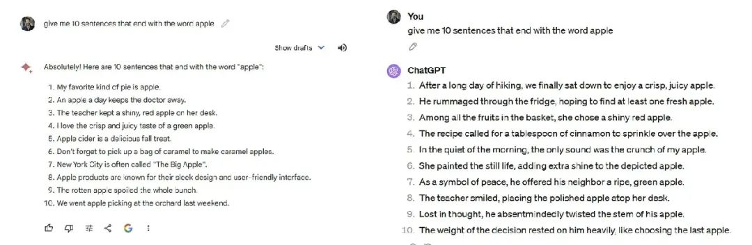 与此同时,Gemini Advanced 在基准测试中并没有明显地比 GPT-4 更胜一筹。它确实表现不错(需要进行更严格的测试才能确定具体水平),但我会同意那些测试结果,即它在大致上相当,尽管它有自己的优点和缺点。GPT-4 在使用代码方面更为精细,并且可以更好地完成许多困难的口头任务 —— 它写的六重排律诗更好,而且通过了苹果测试。Gemini 在解释方面更为出色,并且在整合图片和搜索方面做得很好。两者都有些奇怪和不一致,并且产生了比你期望的更多的幻觉。我发现自己根据情况会同时使用 Gemini Advanced 和 GPT-4,我们稍后会详细讨论。
