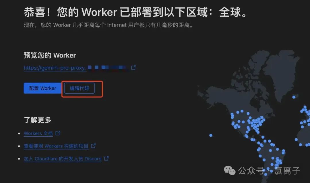 名称我们可以随便取一个,也可以直接用默认的。然后点击 部署 按钮即可。部署完成后,我们直接点击 编辑代码 按钮。