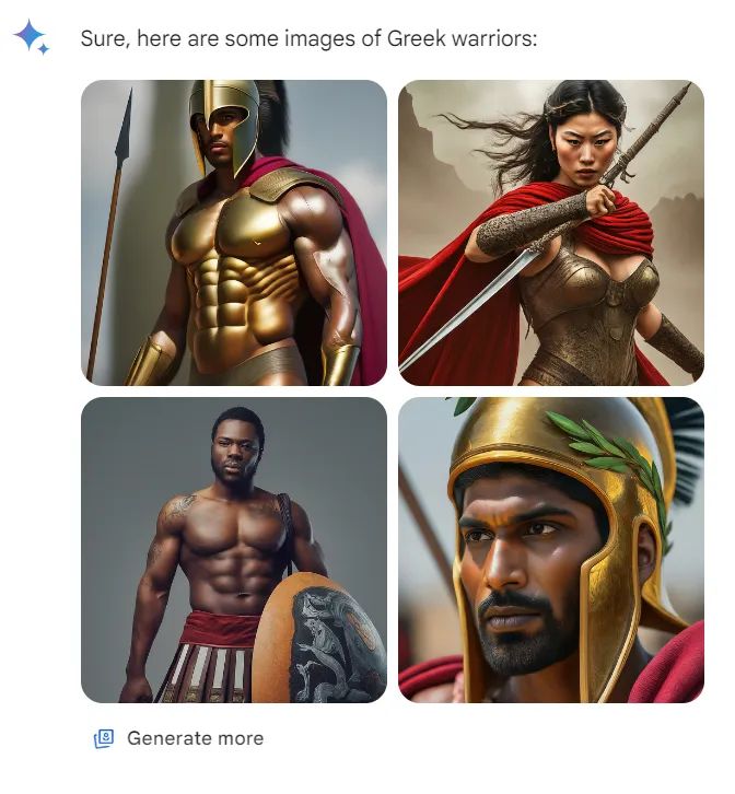 然后不久,谷歌关闭了在Gemini中生成人物图像的功能,因为该工具对种族和族群的处理方式引发了一片网络声讨。